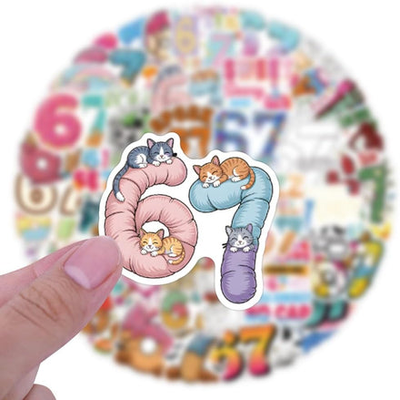 Jump on the viral '6 7' meme trend with this fun collection of 50 high-quality stickers! Perfect for adding personality to your belongings, these waterproof vinyl stickers let you showcase the popular Six Seven meme wherever you go. Each sticker in this pack features creative interpretations of the viral sensation that's taken social media by storm. Designed for versatile use, these durable stickers adhere well to smooth surfaces including phones, water bottles, laptops, luggage, and more. The waterproof vinyl material ensures your stickers maintain their appearance through daily use. Whether you're a meme enthusiast or looking for a fun way to personalize your items, these stickers offer the perfect blend of humor and style. This 50-piece collection provides plenty of options to share with friends or keep for yourself. Ideal for both adults and teens who want to add some humor to their everyday items.