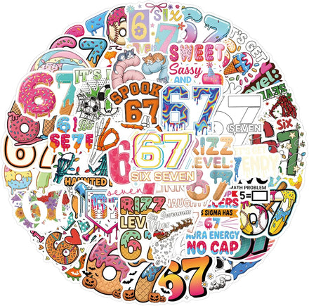 Six Seven Stickers 50Pcs, Funny 6 7 Stickers Waterproof Vinyl Gifts for Phone, Water Bottle, Luggage, Laptop, Adults Teens