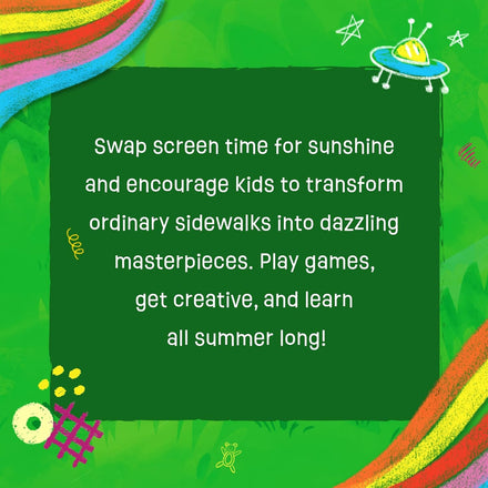 • OUTDOOR FUN: Swap screen time for sunshine and encourage kids to transform ordinary sidewalks into dazzling masterpieces. Play games, get creative, and learn all summer long!
