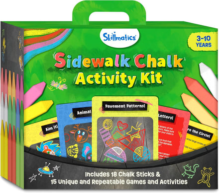 Skillmatics Sidewalk Chalk Activity Kit - Creative Outdoor Fun with 18 Washable Chalk Sticks, 15 Activities & Games for Kids, Gifts for Boys & Girls Ages 3, 4, 5, 6, 7, 8, 9, 10