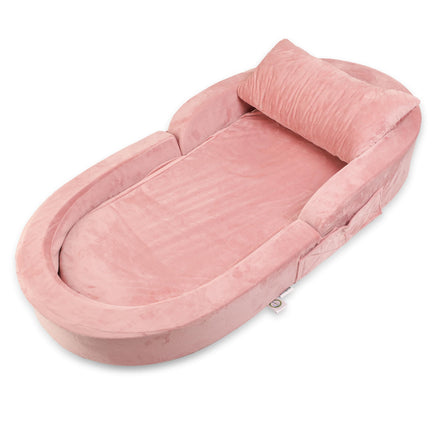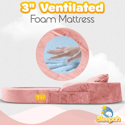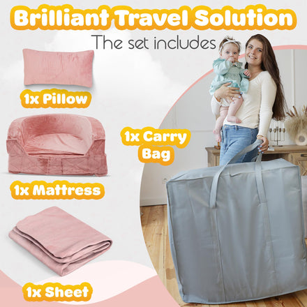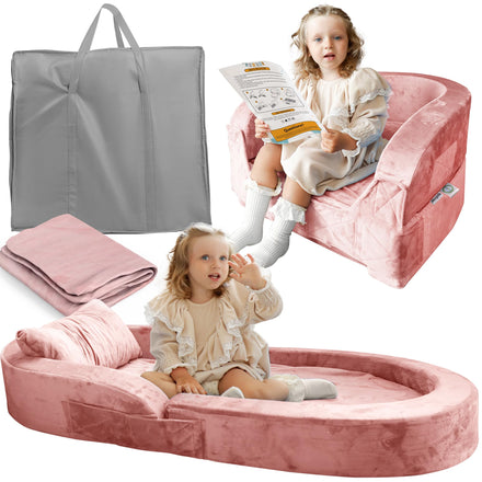 Sleepah Toddler Travel Bed & Chair – Foam Raised Safety Bumpers (55" x 26" x 8") – Foldable Portable Cot for Children 18M – 6yr Old - Fold Out Sofa Couch Lounger with Sheet Pillow & Case (Pink)
