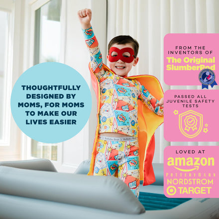 • Versatile Usage: Great for sleepovers, visits to Grandma's, vacations, and more, SlumberTot provides a soft-touch sleep surface with integrated side rails, ensuring air-filled comfort and peace of mind for your little ones.