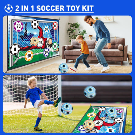 • Toss game&Soccer Toys for Indoor and Outdoor Soccer Toy Set - Are you looking for the perfect game toy for your little soccer fan? This soccer game set is just what you want, with bright colors and realistic designs, the soccer set is best for kids who love soccer game and want to improve their game both indoors and outdoors, encouraging kids boys to stay active and develop their motor skills.