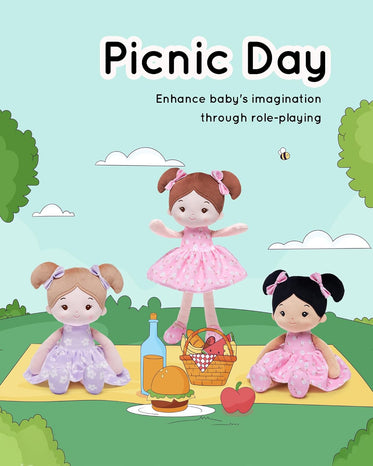 Welcome to Leyadoll,where love speaks in silence. Each doll becomes a unique friend for your baby, with their own personality. They are more than just products; they accompany and express love. Leyadoll is not just a store but a big family, providing special emotion and companionship. Leyadoll, recognized by British Vogue in 'Vogue's Little Wonders' for exceptional baby & child gift ideas. ( 2021 Issues) Our dolls are designed with care and love. They serve as a catalyst for inspiring children to unleash their boundless imagination, crafting their own enchanting tales and embarking on thrilling adventures. We strategically designed the doll’s arms and legs to be no bigger than 4cm, which is the perfect size for babies to grab and play with easily. Behold our dolls, the product of meticulous care! Every seam is like a fortress, cross-stitched for epic battles against your baby's adorable chaos. Soft cotton and high-quality fabric make this doll incredibly cuddly. Perfect for comforting and soothing baby, while providing a durable companion. Flexible limbs allow this doll to pose in different positions, promoting imaginative play and enhancing fine motor skills in children. Machine washable for easy cleaning and maintenance. Provides a hygienic play experience for children while saving time and effort for parents. Ready-to-gift packaging included, making it a perfect present. Instantly delight children and simplify gift-giving for parents. Can I customize the name of the doll? We do not offer name customization services for dolls on this list. However, we do offer other dolls that support customization. Can the dress be removed from the doll? Due to safety concerns, our dolls are designed with non-detachable dresses . Can it be machine washed? Asbolutely. Please rest assured that you can safely wash the doll in a machine without any issues. FloraBelle -pink Busy Sweetheart Baby Cherry Princess Breeze Princess Breeze 12'' Doll & Backpack Soft Book-Dress Me Right