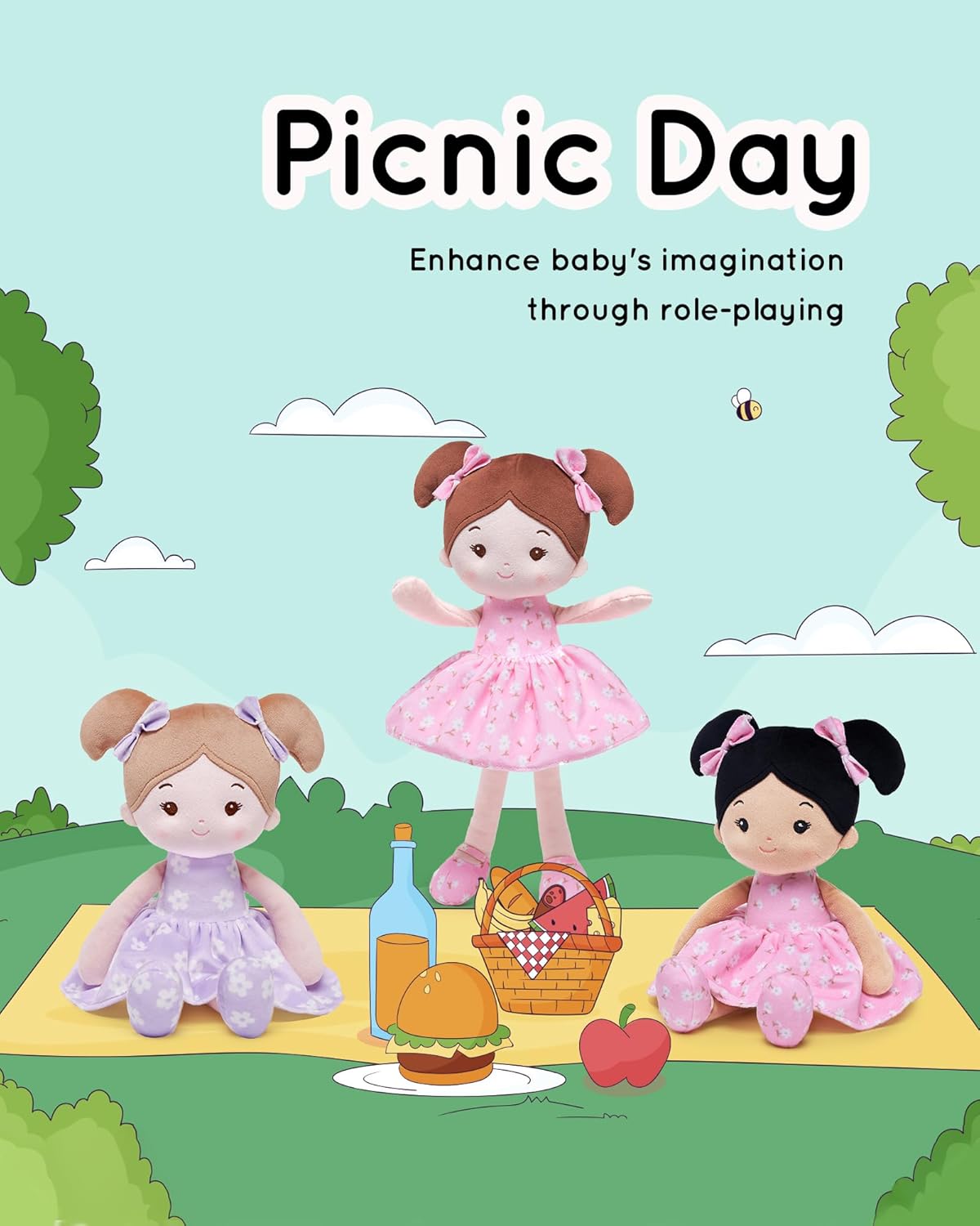Soft Baby Doll Toys (12''), My First Baby Rag Doll for 1 Year-Old Girl Birthday Gift, Christmas Plush Toys Gift for Toddler Kids Infants -FloraBelle(Pink)