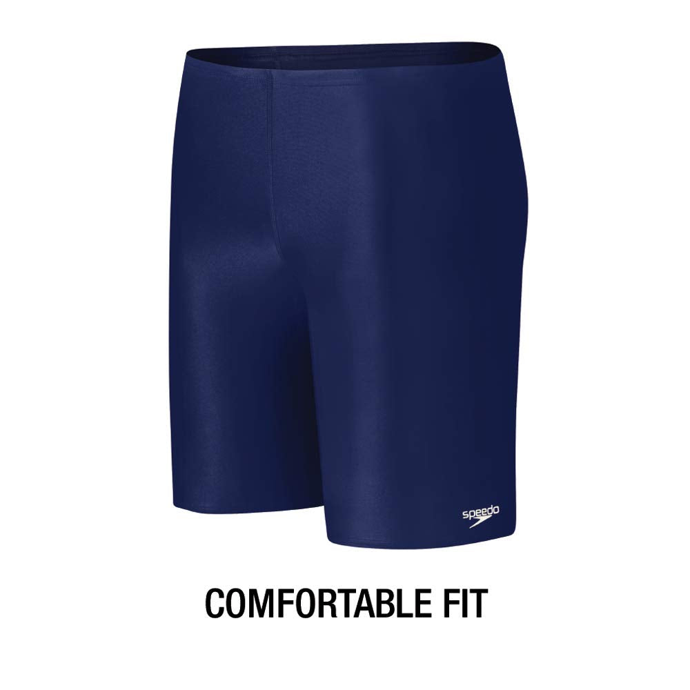 Speedo Boy's Size Charts Speedo Girl's Size Charts Leave the competition treading in your wake in the Speedo® Swim Jammer. PowerFLEX fabric: • Lycra® Xtra Life™ stretch fabric offers a wider range of motion in and out of the water.• Engineered to last over 200 hours in the pool.• Powerful resistance against chlorine, suntan lotions, and skin oils. • Retains shape up to 10X longer than traditional swimwear. Active Flex elastic waistband offers a protective layer of sun protection and comfortable stretch. Brand logo at left hem. Main: 80% nylon, 20% creora® highclo™ spandex;Lining: 100% polyester. Machine wash, tumble dry. Imported. Measurements: Waist Measurement: 21 in Outseam: 17 in Inseam: 10 in Front Rise: 8 in Back Rise: 9 3⁄4 in Leg Opening: 6 in Product measurements were taken using size 10 Big Kids. Please note that measurements may vary by size. If you're not fully satisfied with your purchase, you are welcome to return any unworn and unwashed items with tags intact and original packaging included.