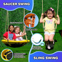 • EXTRA COMFORT: Sportspower Amelia Wooden Swing Set includes a padded saucer swing for up to 2 children to swing on with ASSEMBLED DIMENSIONS measuring 10.25'L x 9'W x 8.1'H