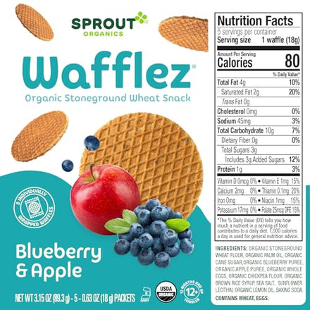 Sprout Organic Wafflez, Blueberry Apple, 0.63 Oz, 5 Ct