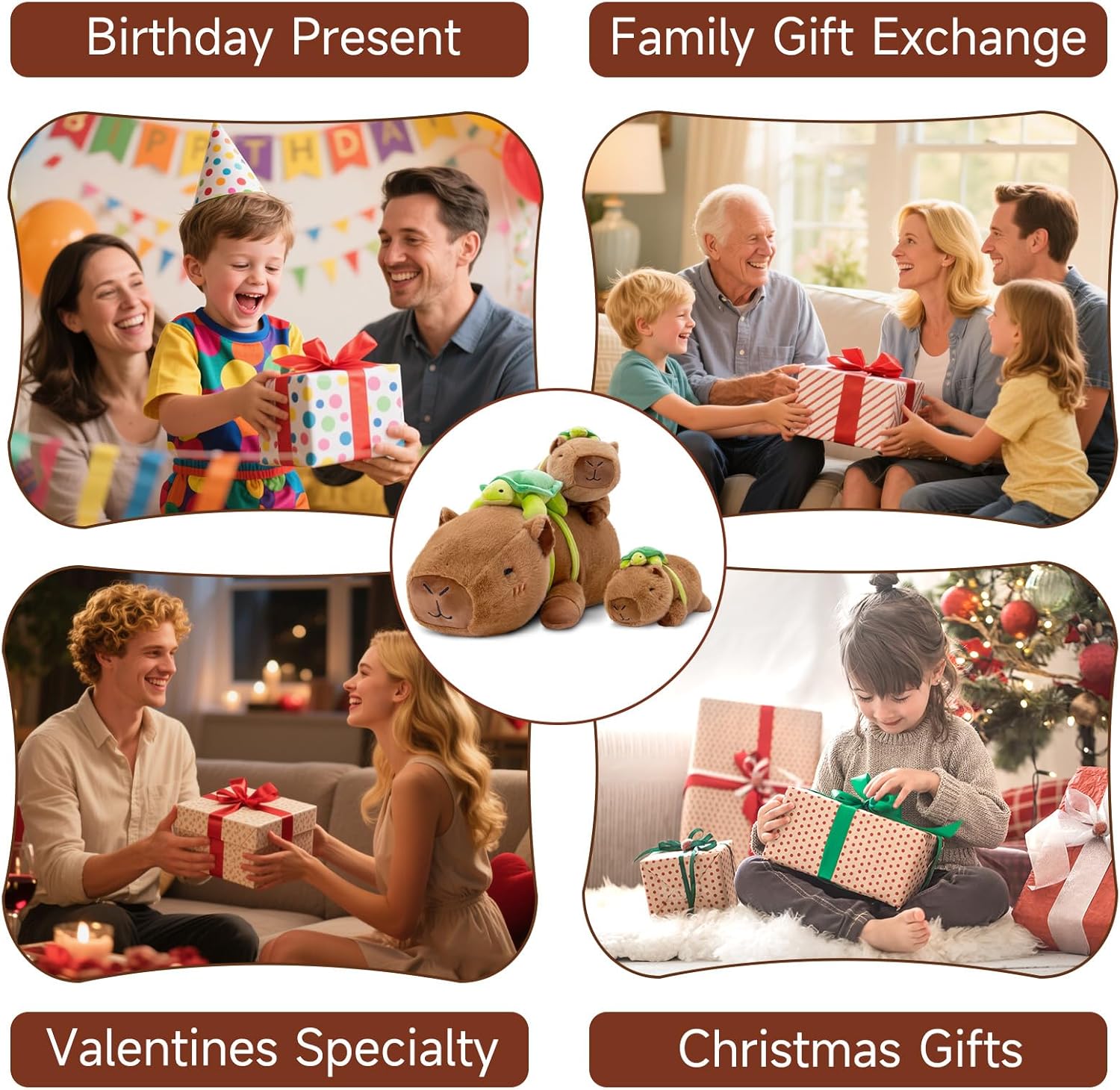 • [Best Gift Choice: The Fluffy Buddy! ​] Meet your new favorite present—the Weighted Capybara Stuffed Animals Plushie! Perfect for animal lovers, kids, and adults who crave cozy vibes. Whether it’s: ​Christmas​ ("Santa’s cutest helper!"), ​Easter​ ("Hoppy snuggles > egg hunts!"), ​Valentine’s Day​ ("Love you to the moon & back... like this capybara hugs!"), ​Children’s Day​ ("A squishy BFF for tiny hands!").