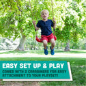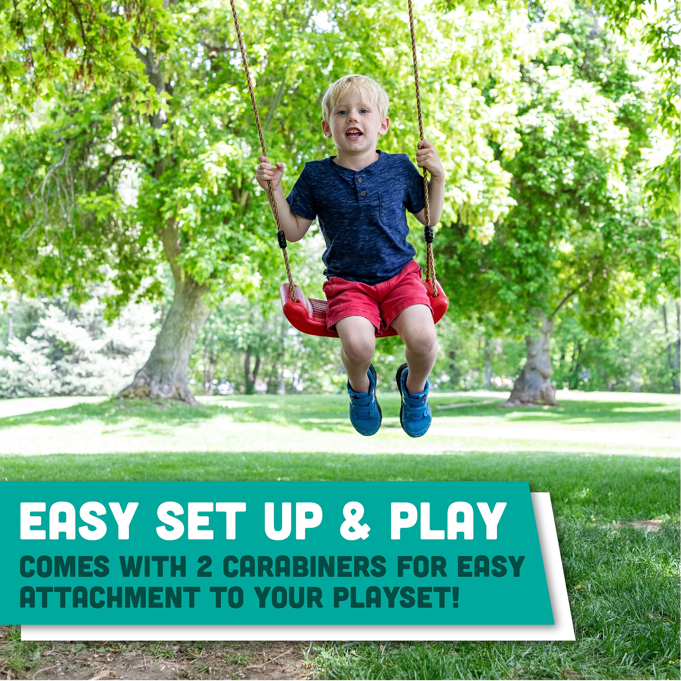 • DIY INSTALLATION: Let kids swing on any playground! The ropes are adjustable from 48"-78", and the molded swing seat are a great alternative to sling style swings. Comes with carabiners for easy do it yourself installation!