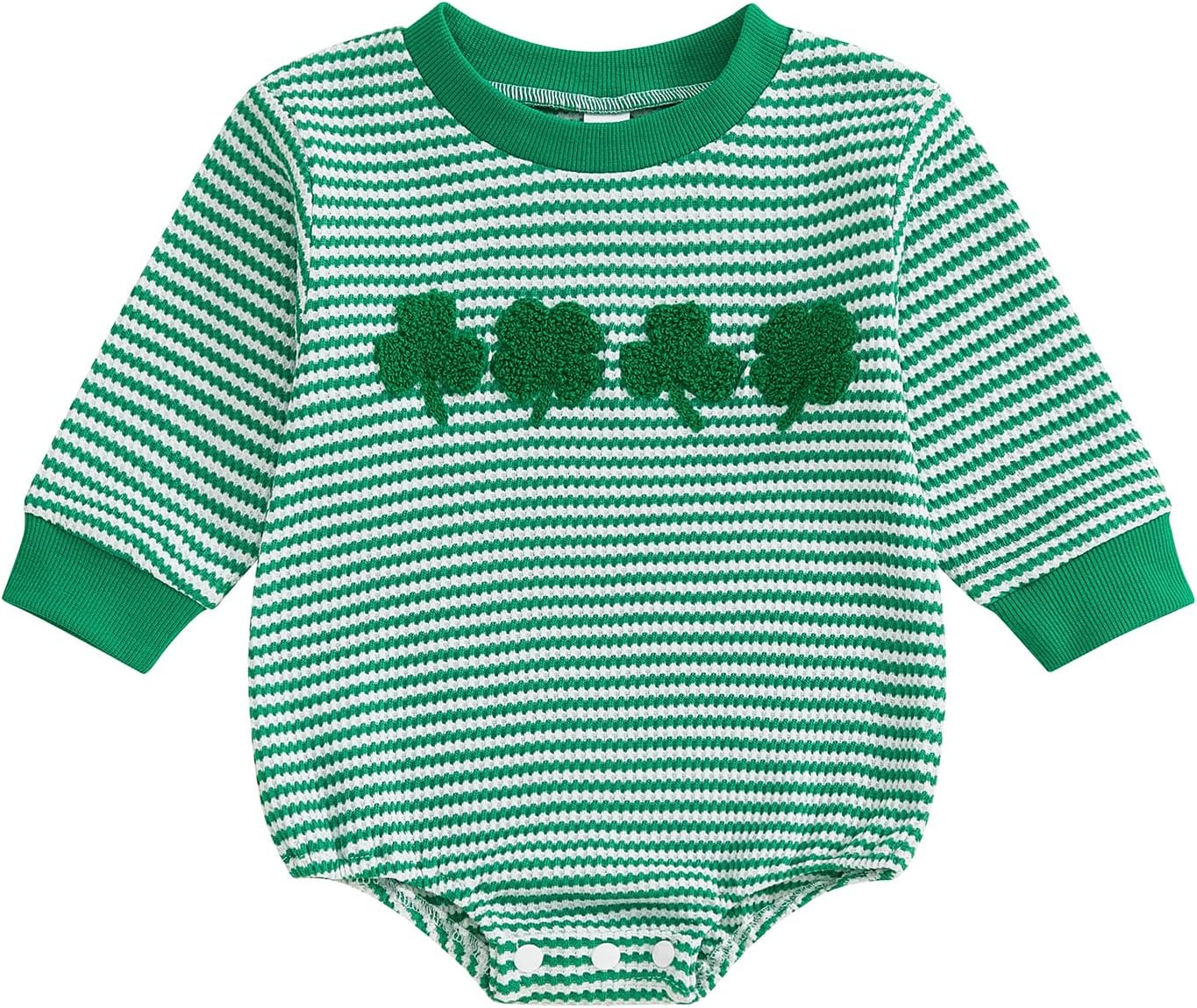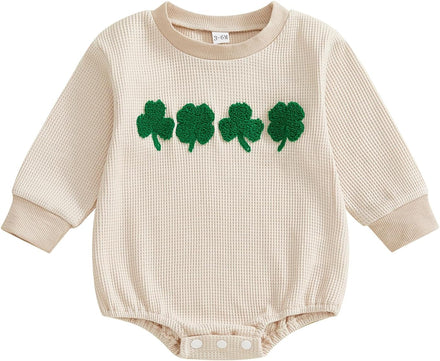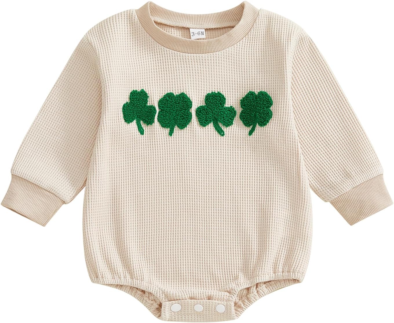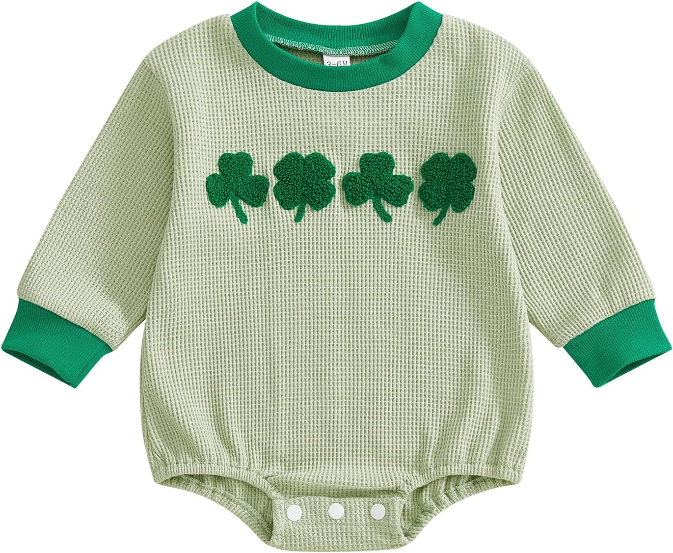 St Patricks Day Baby Boy Outfit Newborn Waffle Shamrock Onesie Sweatshirt Bubble Romper Top Infant Spring Clothes