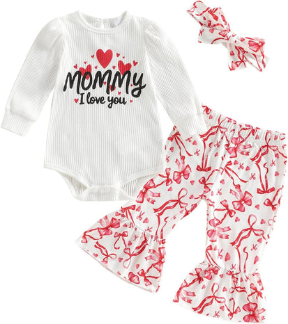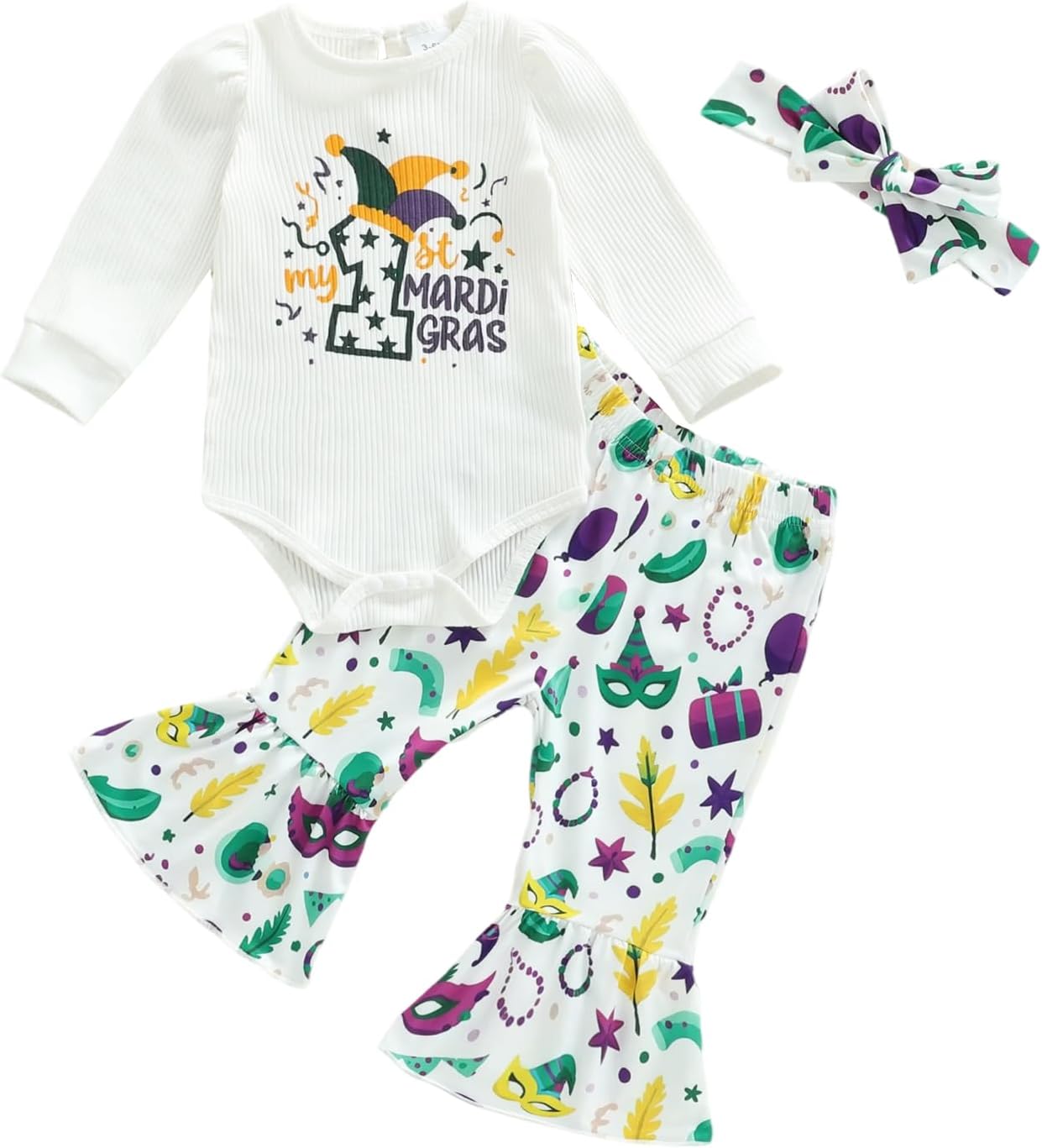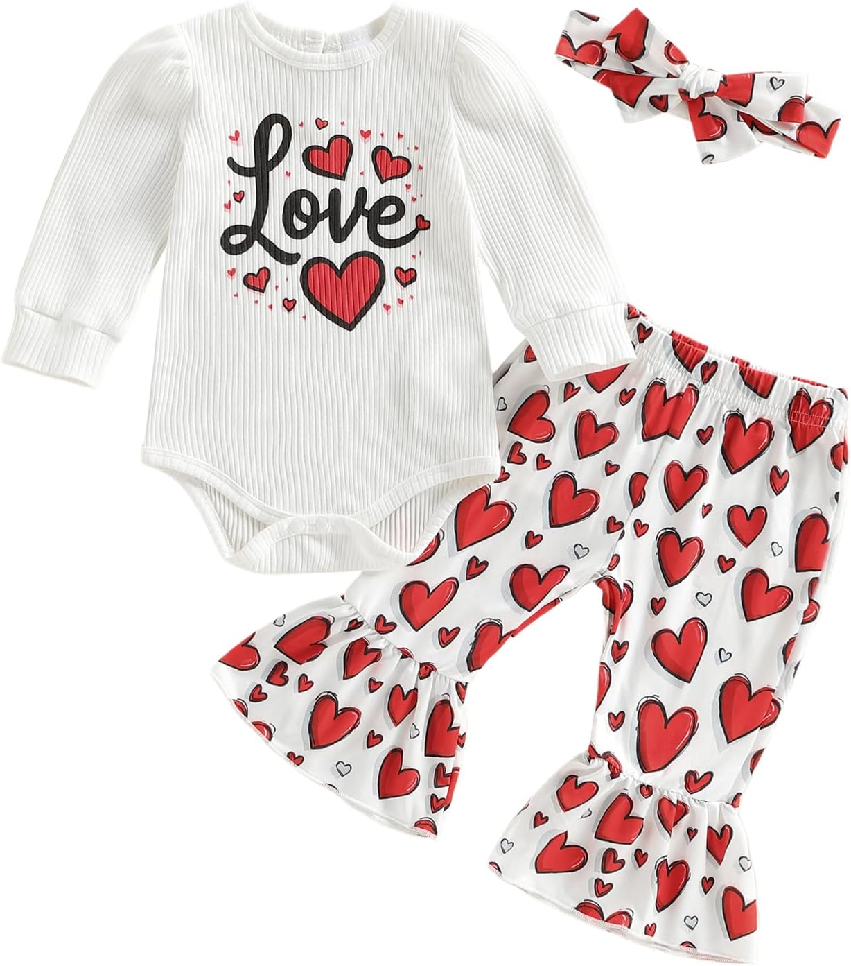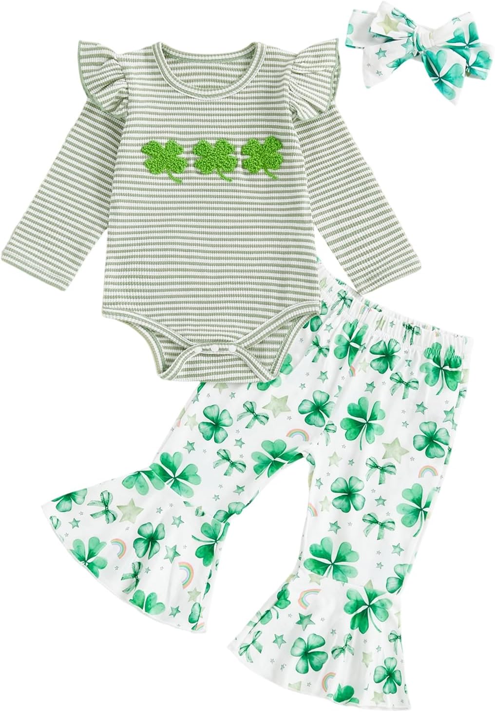 St Patricks Day Baby Girl Outfit Newborn Ribbed Shamrock Onesie Flare Pants Set Romper Bell Bottoms Spring Clothes
