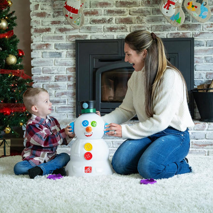 Celebrate the magic of winter, no snow required. My First Snowman™ brings the joy of building a snowman indoors for endless festive fun. Little ones can decorate and customize their very own snowman friend using 15 mix-and-match accessories, creating silly faces and unique looks every time they play. Kids will love pressing the light-up hat that plays cheerful holiday music, bringing their snowman to life with sound and sparkle. As they build, toddlers practice fine motor skills, hand-eye coordination, and imagination while making memories that last beyond the season. When playtime is done, all accessories neatly tuck away inside the snowman’s body for easy built-in storage, keeping everything tidy for the next snowy adventure. Durable construction ensures years of holiday fun for the whole family. Requires 3 AAA batteries (not included).
