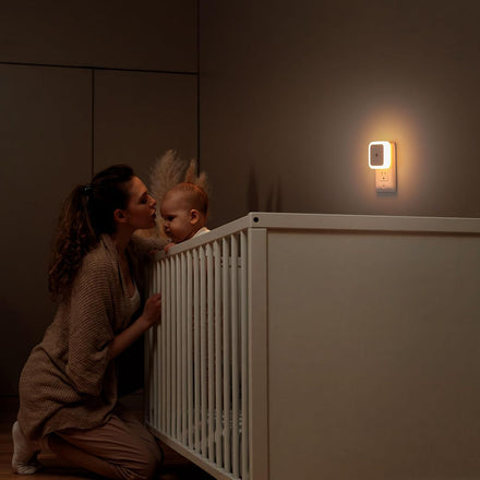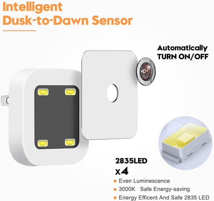 • Dusk to Dawn Sensor Night Light--Built-in sensitive light sensor, the nightlight automatically turns on at dusk and off at dawn. Emitting gentle light