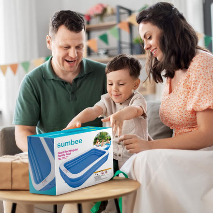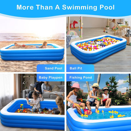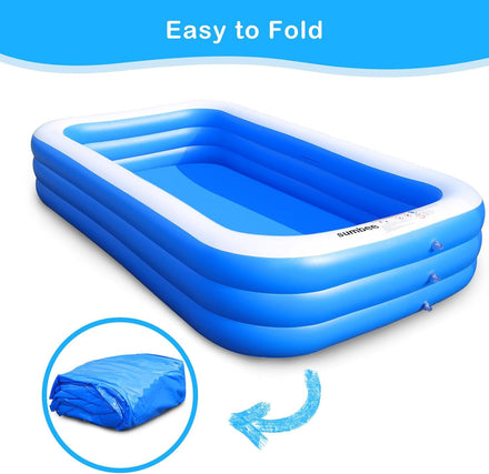 Sumbee Inflatable Swimming Pool for Kiddie Adults Kids, 120" X 72" X 22" Large Blow Up Pool for Family Backyard Outdoor Toddler,Big Rectangle Pools for Children Ages 4-8-12,Full-Sized,Blue