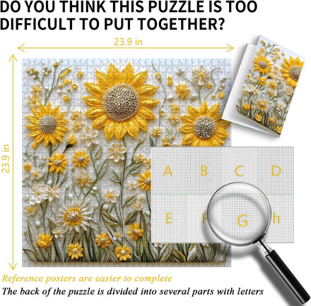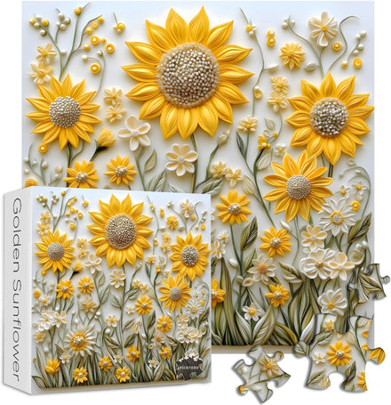 Sunflower Puzzles for Adults 1000 Pieces, PICKFORU Spring Flower Garden Puzzle Nature, Difficult Hard Golden Sunflower Art Theme, Challenging for Adults
