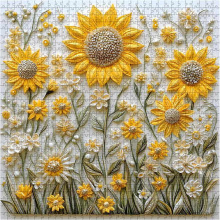 • Floral Puzzles for Adults:A mesmerizing jigsaw puzzle depicting a magnificent sunflower field. Its golden sunflowers and blooming wildflowers create a warm and uplifting challenge