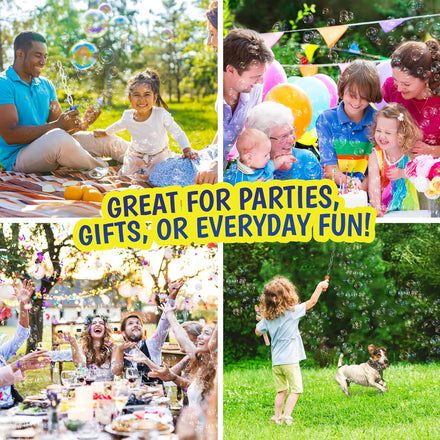• ENDLESS BUBBLES: This 4 oz bottles of bubble solution are perfect for creating ultra-fun bubbles anytime and anywhere. Great for birthday parties, holidays, family events and everyday fun!