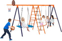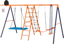 • Fun for Groups 6-in-1 Swing Sets -- Includes 2 height adjustable swings: platform saucer swing, EVA belt swing; 1 reinforced climbing ladder; 1 swing glider; 1 composite fiber climbing net; 1 basketball hoop. Designed to accommodate multiple children simultaneously, our swing set ensures hours of shared joy and laughter, fostering friendship and teamwork.