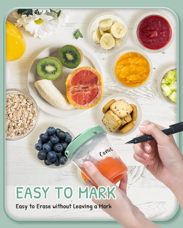 • Multi-Purpose: The dry-erase marker makes baby food containers for daycare rewritable and reusable. The baby containers with lids are primarily used to store self-made baby food, but also could be used in kitchen storage for spices, sauces, or seasoning, even for tiny items like pins, buttons, or handicrafts