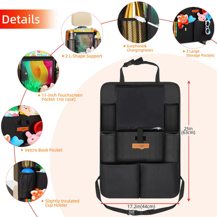 SURDOCA Upgraded Car Organizer with 11-inch Tablet Holder, 8 Pockets, Car Seat Protector for Road Trips - Car Storage and Organizers for Kids