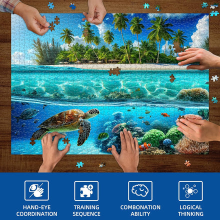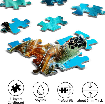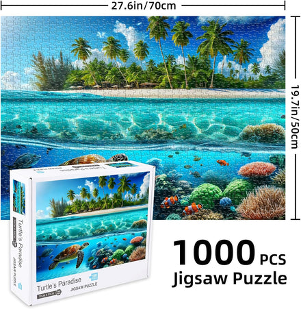 • Nice Materials: Our 1000 piece turtle paradise puzzles for adult are made of high quality cardboard material. Each piece is precisely cut and fits perfectly together.