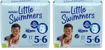 Swim Diapers Size 5-6 (32+ lbs), Huggies Little Swimmers Disposable Swimming Diapers, 17 Ct (Pack of 2)