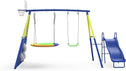 Swing Sets for Backyard with Kids Slide Outdoor Heavy-Duty Metal Playset for Kids 440lbs 5 in 1 Swing Set with Slide, Saucer Seat, Belt Seat, Soccer Goals and Basketball Hoop