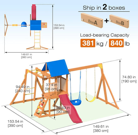 • Weather-Resistant, Polished – Crafted with waterproof varnish, this wood playset designed to withstand the elements, resisting mold and rot even after long outdoor exposure. The polished finish ensures no splinters, enjoying years of fun in the backyard.