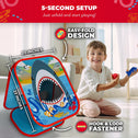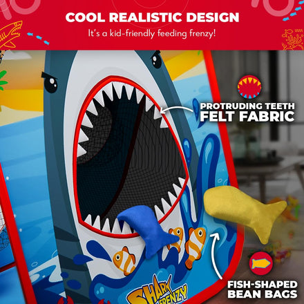 • 🦈 FEED HUNGRY SHARKY OR SAVE THE POOR FISHIES: Watch the kiddos toss fish bean bags to feed hungry sharky. Or flip the board cornhole style, and save the poor fishies from the shark frenzy. Let the adventure begin!
