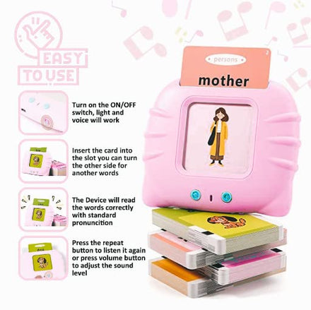 • πŸ”Š Simple & Intuitive: Turn on the switch, insert a card into the reader, and enjoy the content in a clear American accent. Includes real animal sounds, a repeat button, and 5-level volume control. Easy for little ones to use!