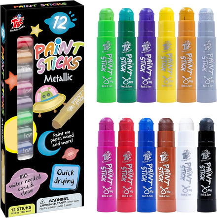 TBC The Best Crafts Paint Sticks,12 Classic Colors, Washable, Non-toxic, Tempera Paint Sticks for Kids and Students