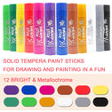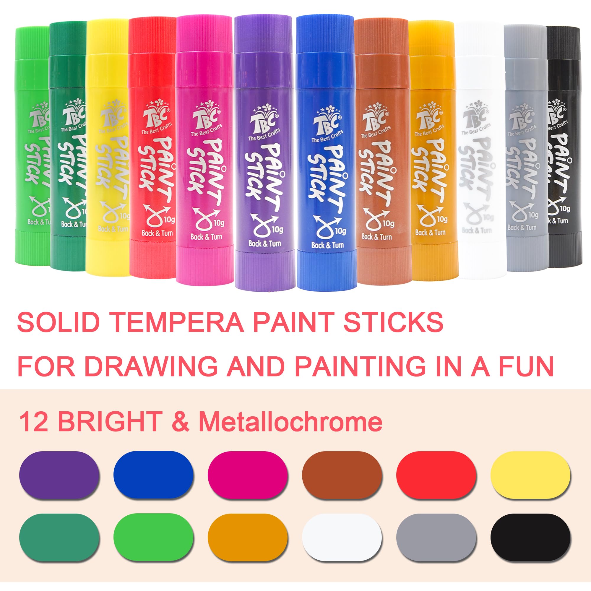 TBC The Best Crafts Paint Sticks,12 Colors Metallic, Washable Paint, Non-toxic, Tempera Paint Sticks for Kids and Students