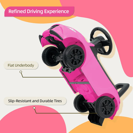 • 【Multimedia Central Control & Bright Headlights】The steering wheel has a horn and multiple music tracks, and the headlights will flash with the rhythm of the music. The realistic experience allows children to immerse themselves in driving