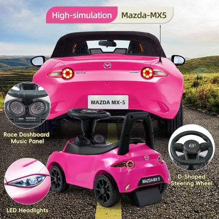TCARAIWEN Ride On Push Car for Toddlers, Licensed Mazda Push Cars for Kids with Horn, Music, Lights, Under Seat Storage, Ride On Toy for 18-36 Months, Pink