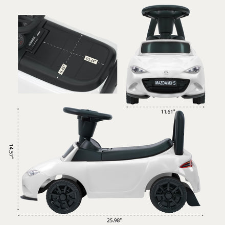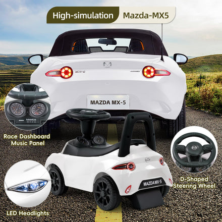 TCARAIWEN Ride On Push Car for Toddlers, Licensed Mazda Push Cars for Kids with Horn, Music, Lights, Under Seat Storage, Ride On Toy for 18-36 Months, White