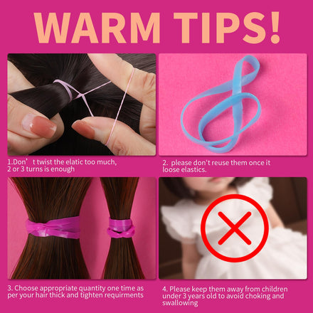 • Warm Tips: These rubber bands are disposable and will loosen after one use, please do not reuse once they lose their elasticity; For thick hair, it is best to use 2 or more rubber bands at the same time to make the hair tight