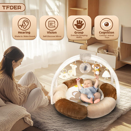 TFDER 6-in-1 Baby Gym Play Mat Plush, Tummy Time Mat with Removable Toys, Baby Activity Gym for Infant to Toddler Motor Skills and Sensory Development, Baby Essential Gift(Bear)