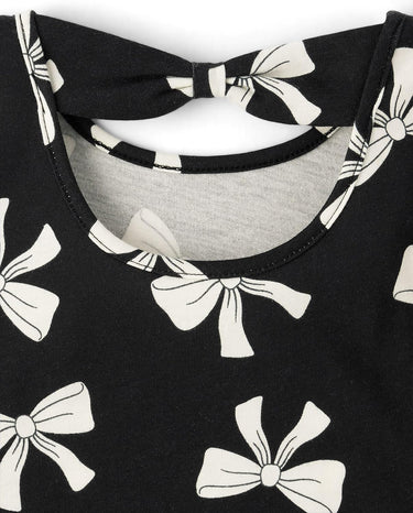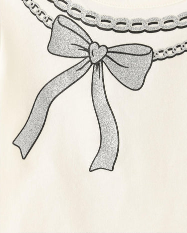 • MULTIPACK: 1 glitter bow necklace graphic design, 1 bow print with non-functional bow back, 1 heart print with flutter trim