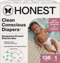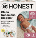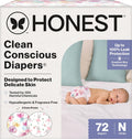 The Honest Company Clean Conscious Diapers for Delicate Skin, Up to 100% Leakproof Hypoallergenic Fragrance-Free Baby Diapers, Gender Neutral Prints, Club Box, Size Newborn, 72 Count (Prints May Vary)