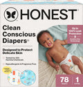 The Honest Company Clean Conscious Diapers for Delicate Skin | Up to 100% Leakproof | Hypoallergenic, Fragrance Free | Summer '25 Limited Edition Prints | Club Box, Size 1 (8-14 lbs), 78 Count