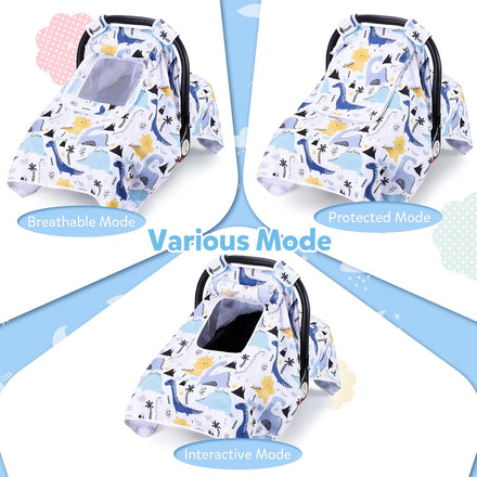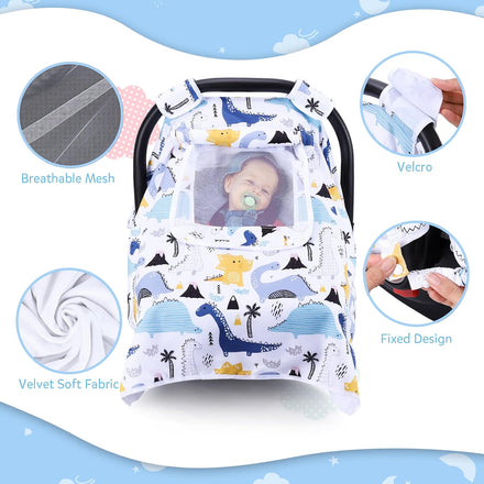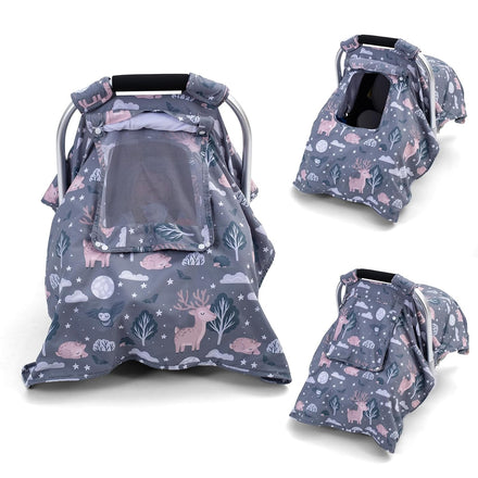 THE KENKYO Car Seat Covers for Babies, Baby Car Seat Cover for Girls Boys, Kick-Proof Newborn Carrier Canopy with Breathable Mesh Peep Window, Windproof Stroller Cover for All Seasons