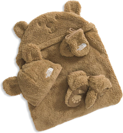 • COMPLETE COMFORT: The Baby Campshire Box Set is a 100% snuggly set featuring a hat, mittens, booties and a blanket. It features recycled fabric, adorable bear ear accents and is packed in a fun gift box, making it perfect for baby showers or the holidays.