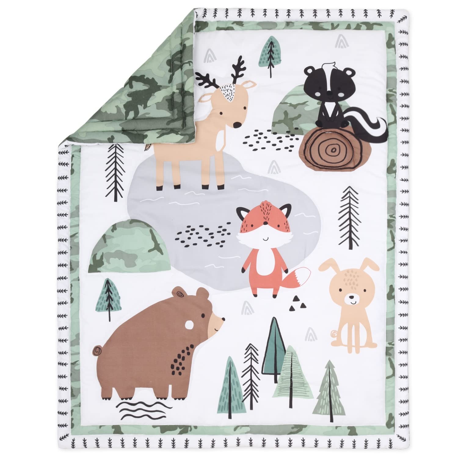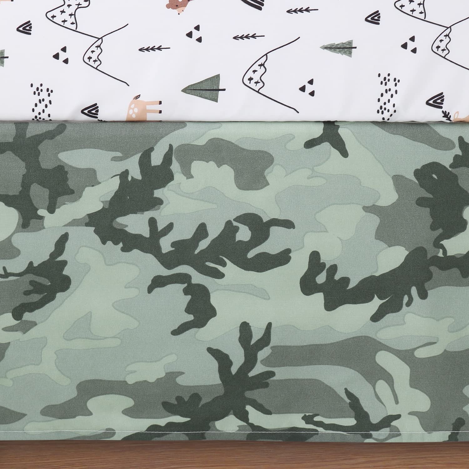 The Peanutshell 3 Piece Baby Crib Bedding Set for Boys - Newborn, Infant & Toddler Nursery Bed Set Decor with Fitted Crib Sheet, Dust Ruffle Comforter - Woodland Camo