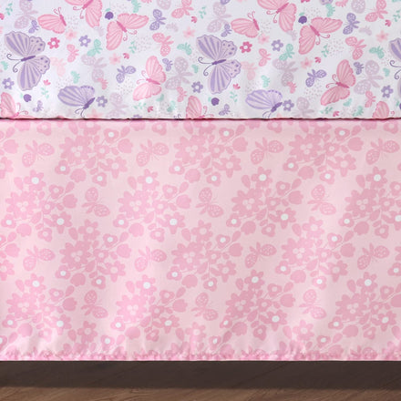The Peanutshell 3 Piece Baby Crib Bedding Set for Girls - Newborn, Infant & Toddler Nursery Bed Set Decor with Fitted Crib Sheet, Dust Ruffle Comforter - Butterfly Song