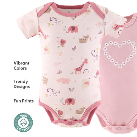 The Peanutshell Baby Girl Short Sleeve Bodysuits - Girl Clothes, Newborn 0-3, 3-6, 6-9, 9-12, 12-18, 18-24 Months Baby Clothes - 100% Cotton Infant, New Born Outfits - Rainbow Safari (0-3)