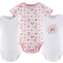 • Mix & Match: Set of 7 baby girl short sleeved bodysuits allows for numerous outfit combinations. See our various matching pants and layette sets for added wardrobe options.