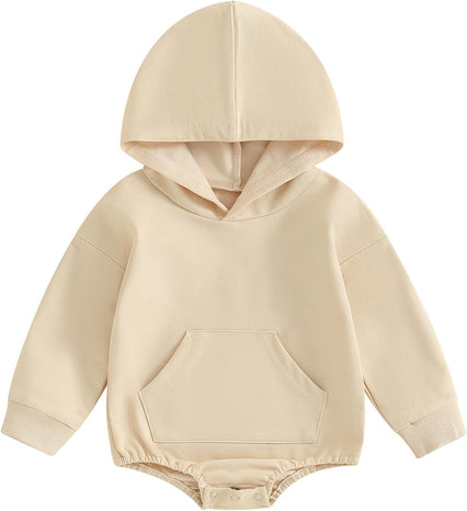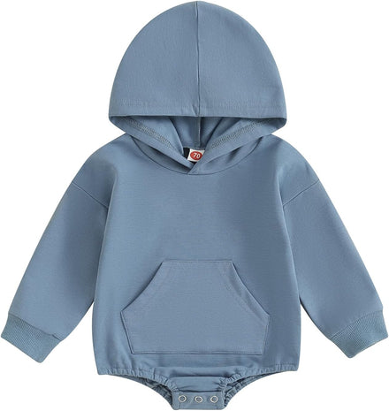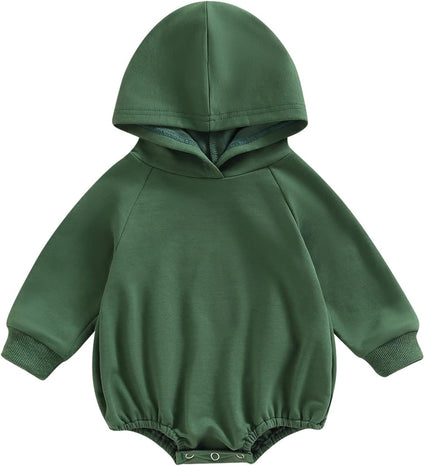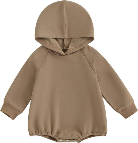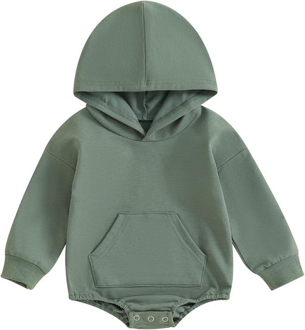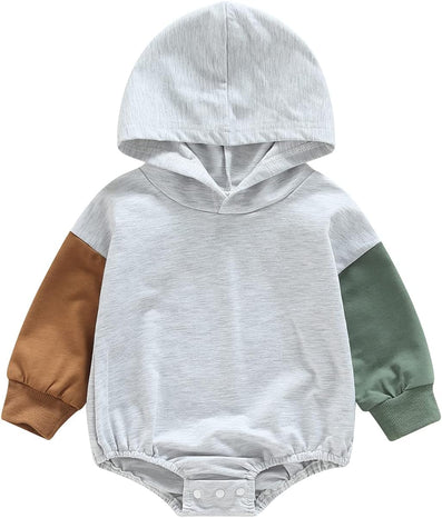 Thorn Tree Newborn Baby Boys Hooded Sweatshirt Long Sleeve Solid Romper Infant Baby Fall Winter Spring Outfits