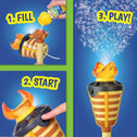 Transform your backyard into a tropical paradise with the Maxx Bubbles Tiki Torch Bubbler! Perfect for pool parties, outdoor celebrations, or a sunny afternoon in the backyard, this automatic bubble machine fills the air with a flurry of bubbles with just the flip of a switch. The bubbles are paired with upbeat tropical tunes to really get the party started! Designed to look like a tiki torch, the built-in LED light adds a touch of island magic, lighting up the night as bubbles float around. Standing 4 feet tall, it’s easy to set up and comes with ground stabilizers to keep it sturdy. Just connect the poles, fill the base with water or sand, and you’re ready to go! The convenient top fill design makes refilling bubble solution a breeze. Plus, the removable upper bubble unit doubles as a wand, so little ones can carry the bubble fun with them. With 4 ounces of premium, non toxic bubble solution included, you’ll be having a bubble party in no time!