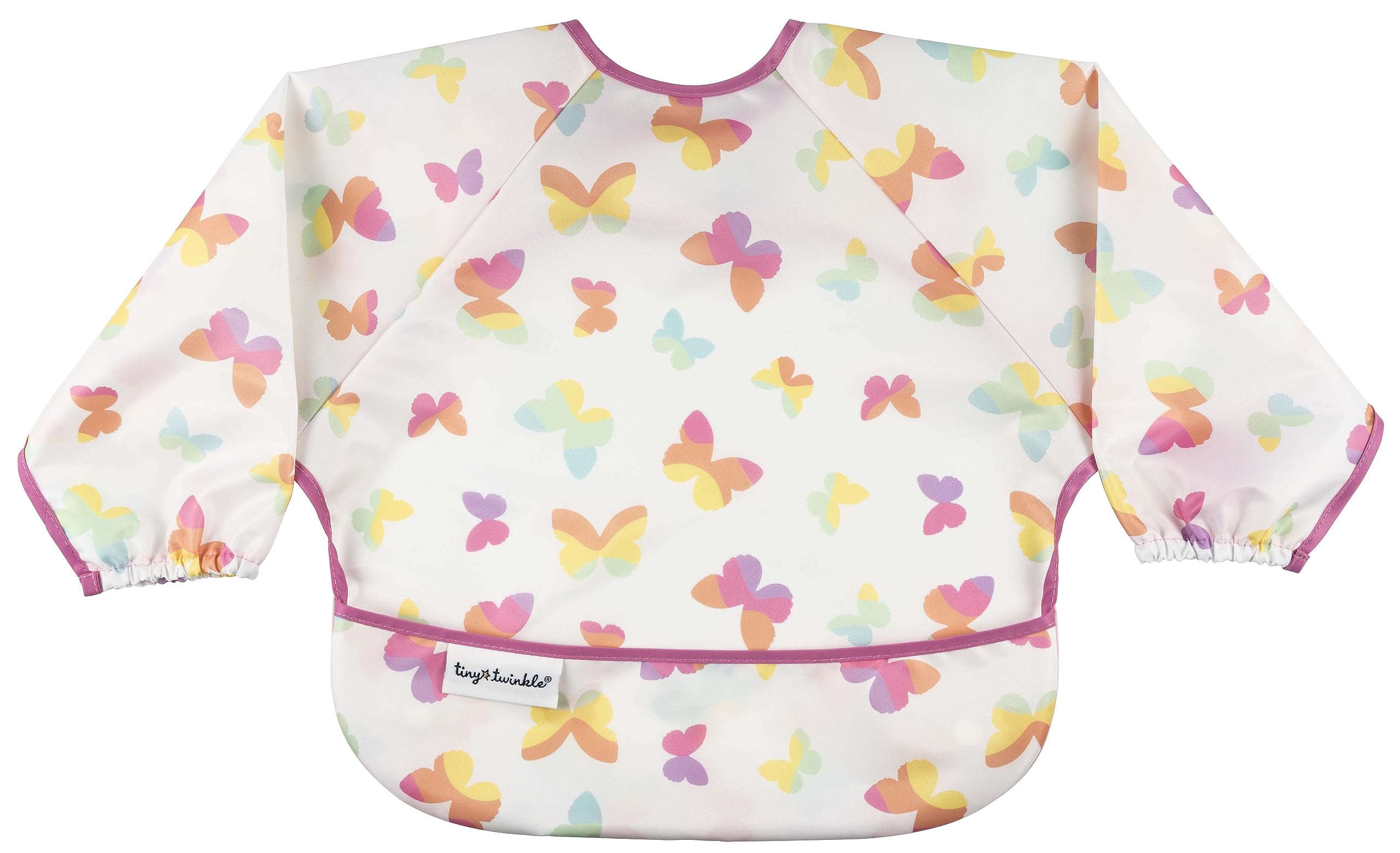 Tiny Twinkle Mess Proof Baby Bib, Cute Full Sleeve Bib Outfit, Waterproof Bibs for Toddlers, Machine Washable, Tug Proof, Baby Smock for Eating, Long Sleeved (Butterflies, Small 6-24 Months)